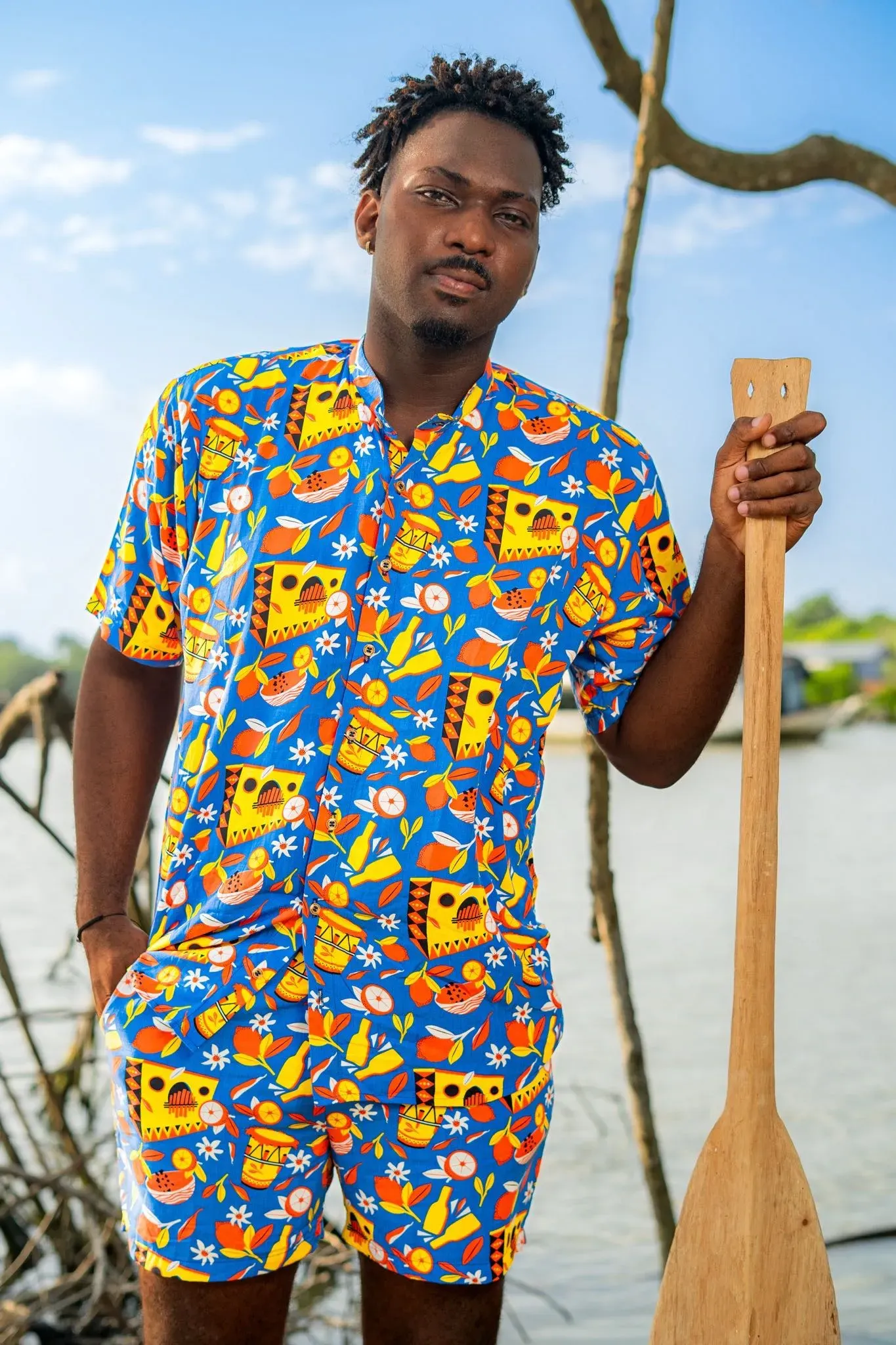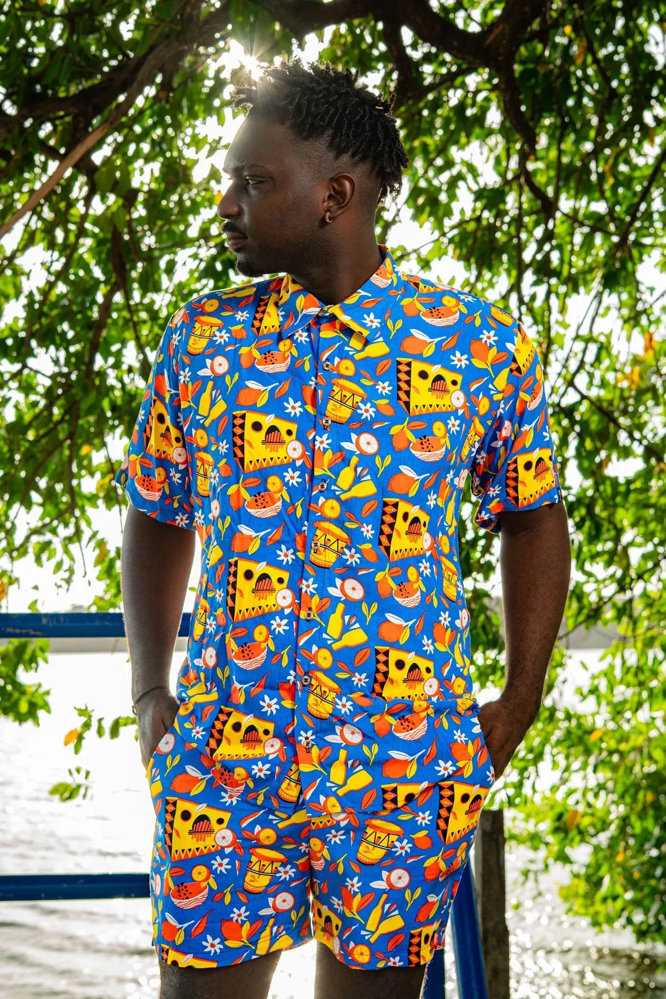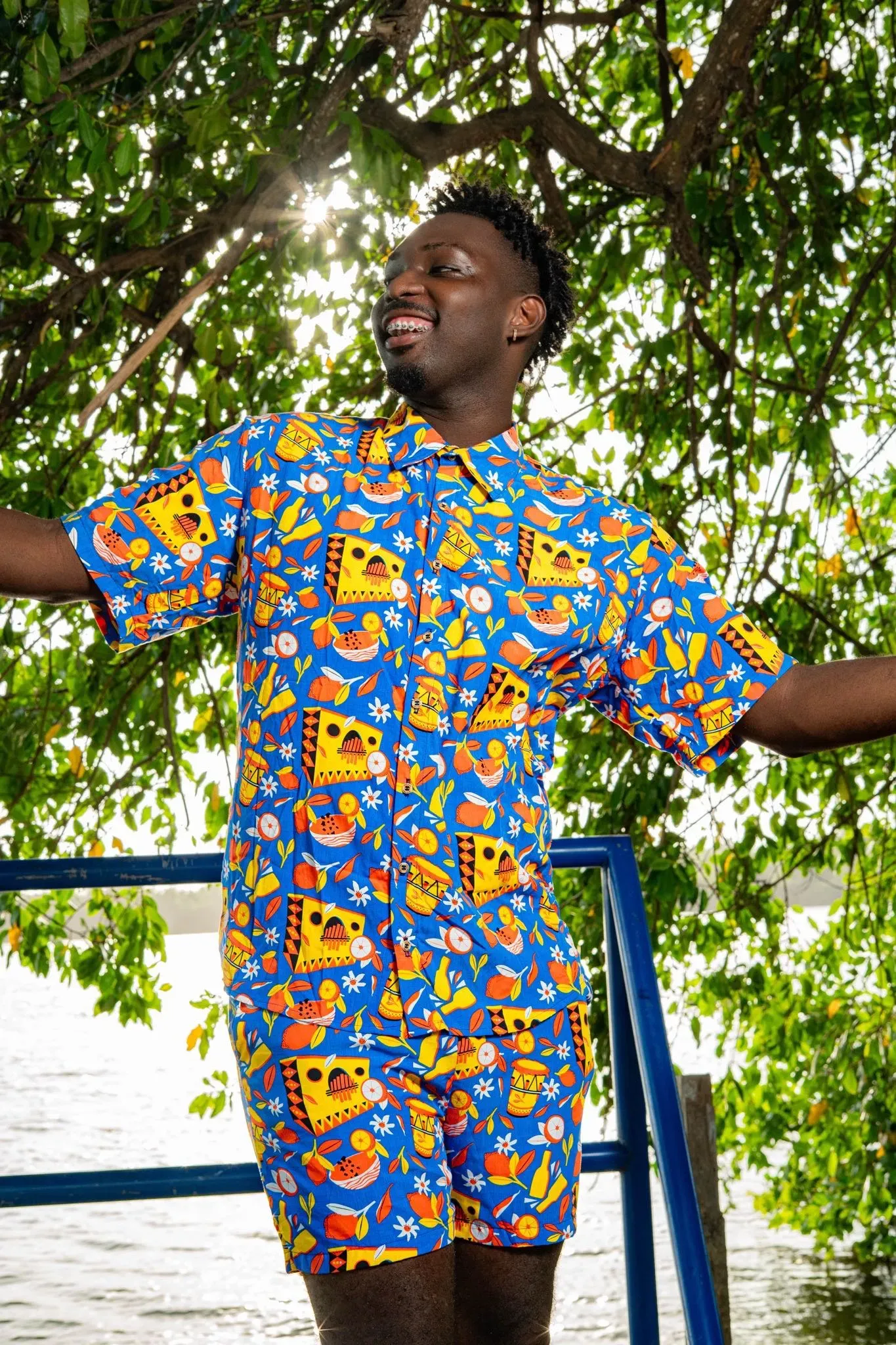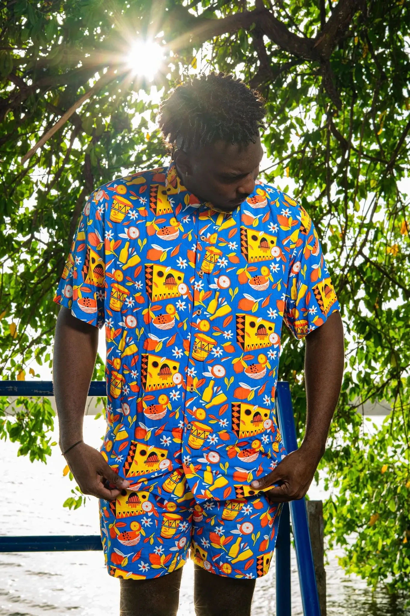 Camisa sin género estampada SEXTETO en viscosa fresca con cuello INGLÉS, ideal para expresar tu identidad afrocolombiana. Confeccionada en 100% viscosa fresca, esta camisa de manga corta es perfecta para lucir un estilo único y auténtico.