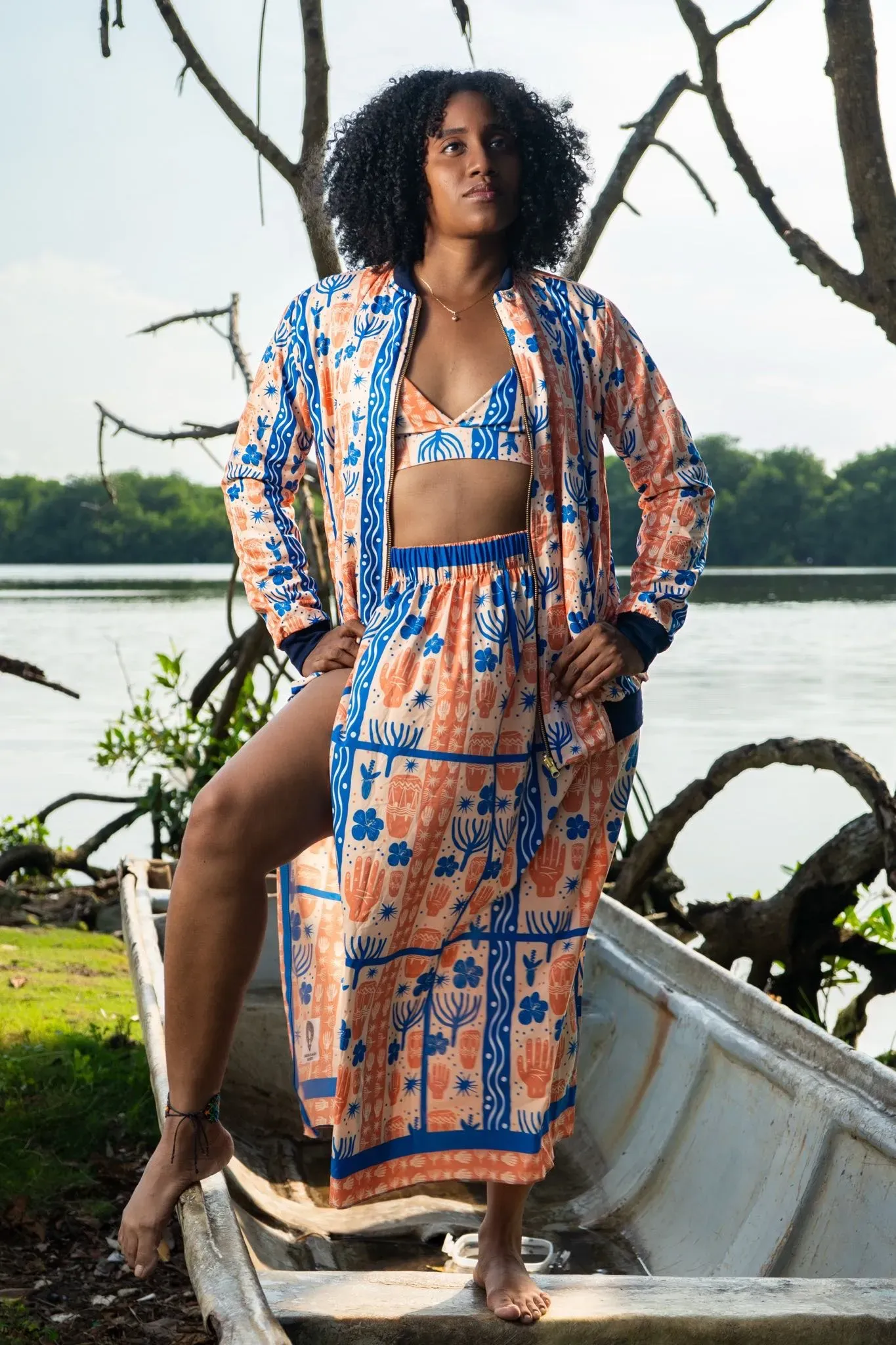 Falda larga con estampado BULLA Y PESCA, talla única y cintura elástica. Largo de 96cm con abertura en la pierna. Ideal para un look cómodo y elegante. Confeccionada con materiales de alta calidad, perfecta para cualquier ocasión. ¡Hazte con esta falda para lucir a la moda en Colombia!