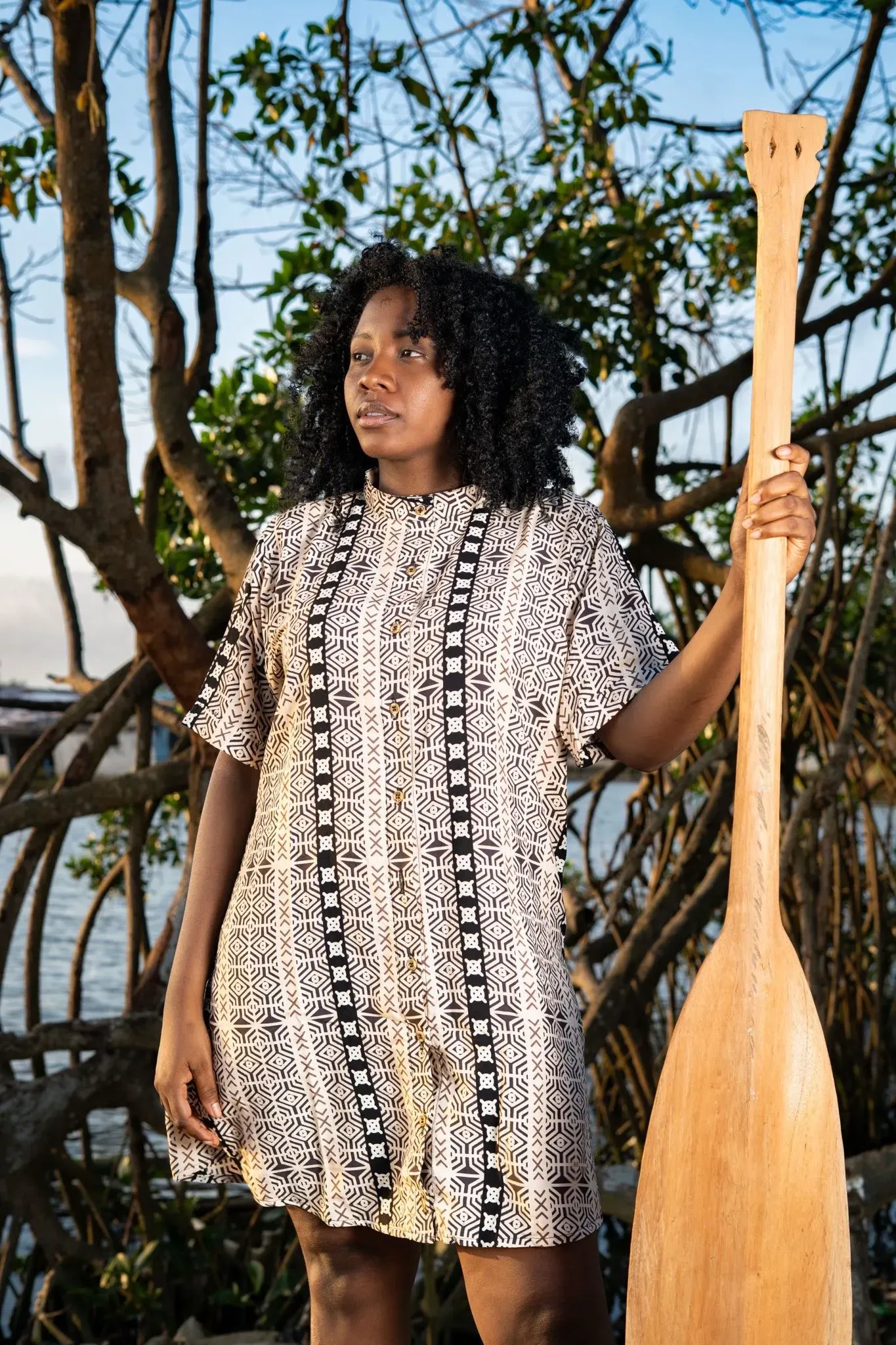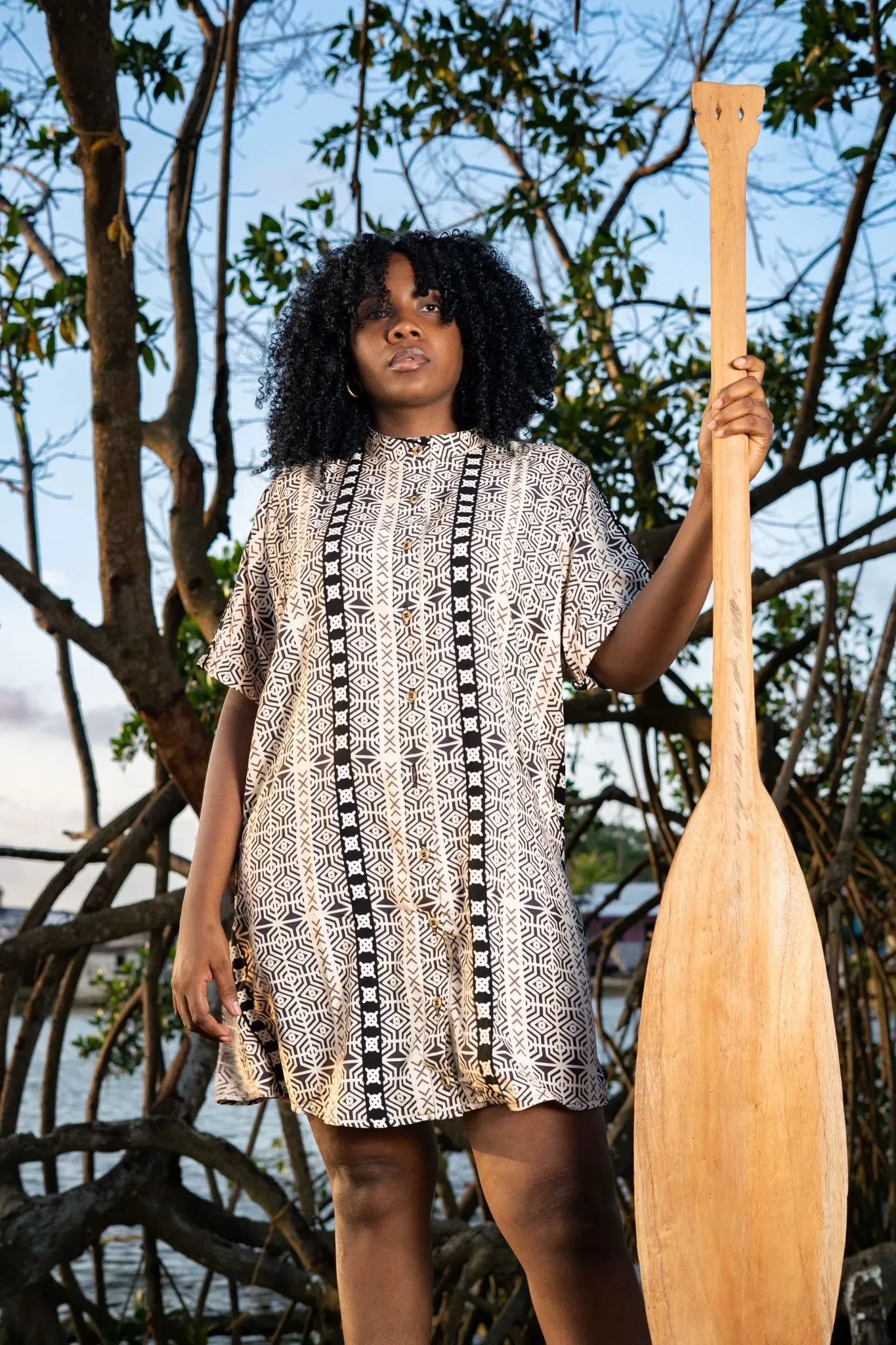 Camisón sin género estampado BARCAZA en viscosa fresca con cuello nerú, ideal para quienes buscan comodidad y estilo. Con identidad afrocolombiana, este camisón de manga corta en 100% viscosa fresca destaca por su estampado tierra viva. ¡Atrévete a lucir un look único y auténtico!