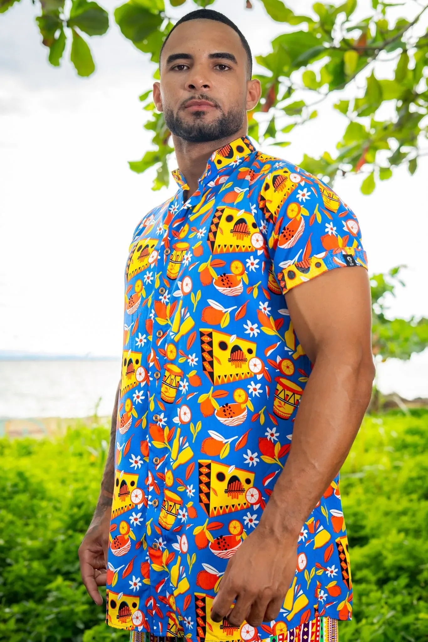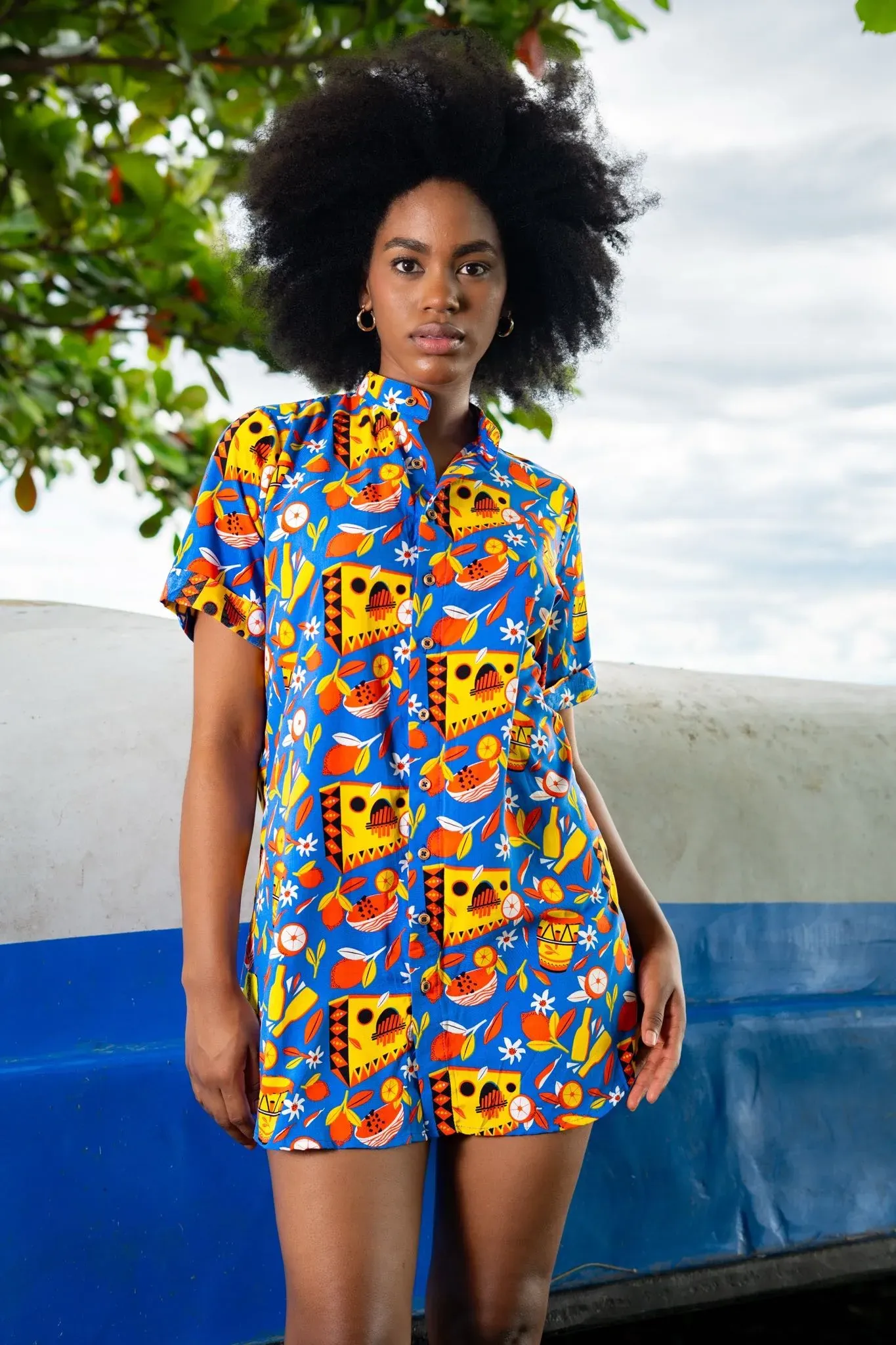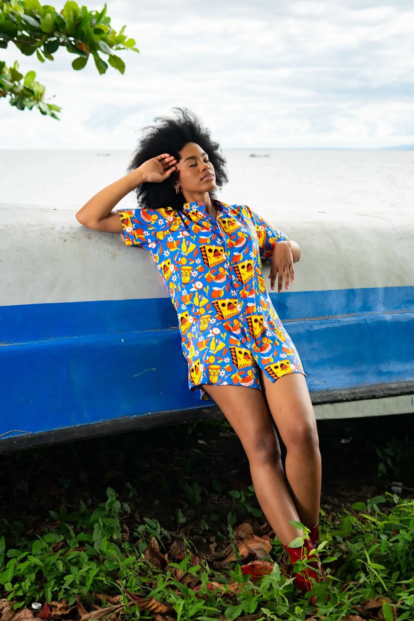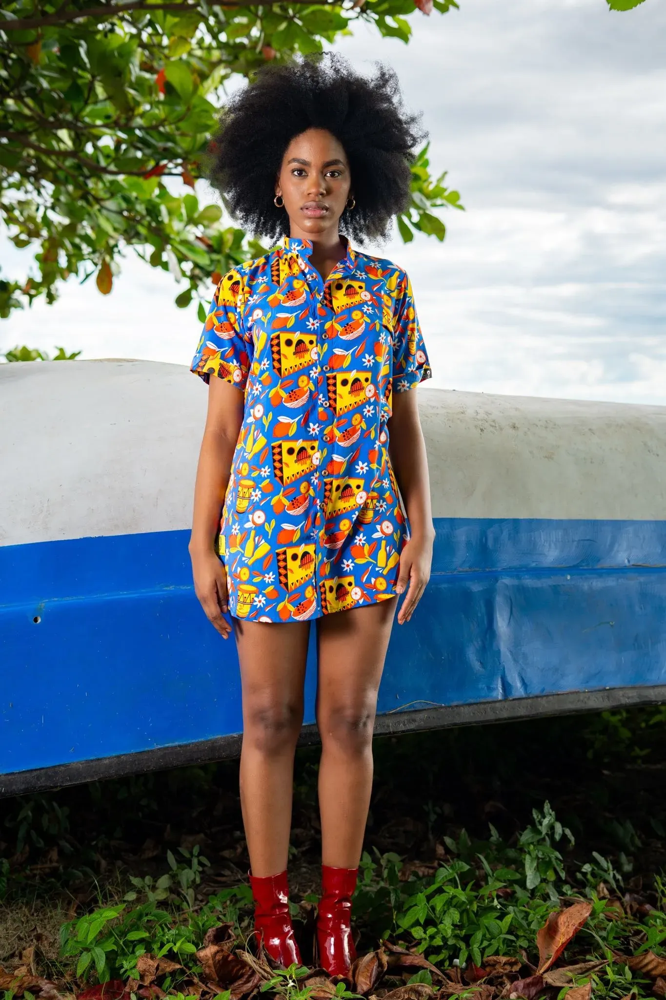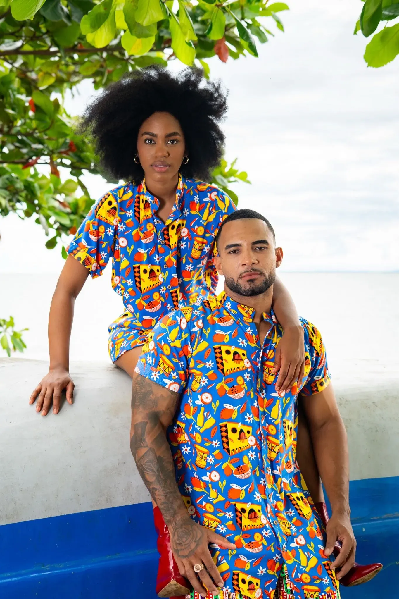 Camisón sin género estampado BARCAZA en viscosa fresca con cuello nerú, resalta la identidad afrocolombiana con su estampado tierra viva. Ideal para quienes buscan comodidad y estilo. Atrévete a lucir un look único y auténtico con este camisón de manga corta.
