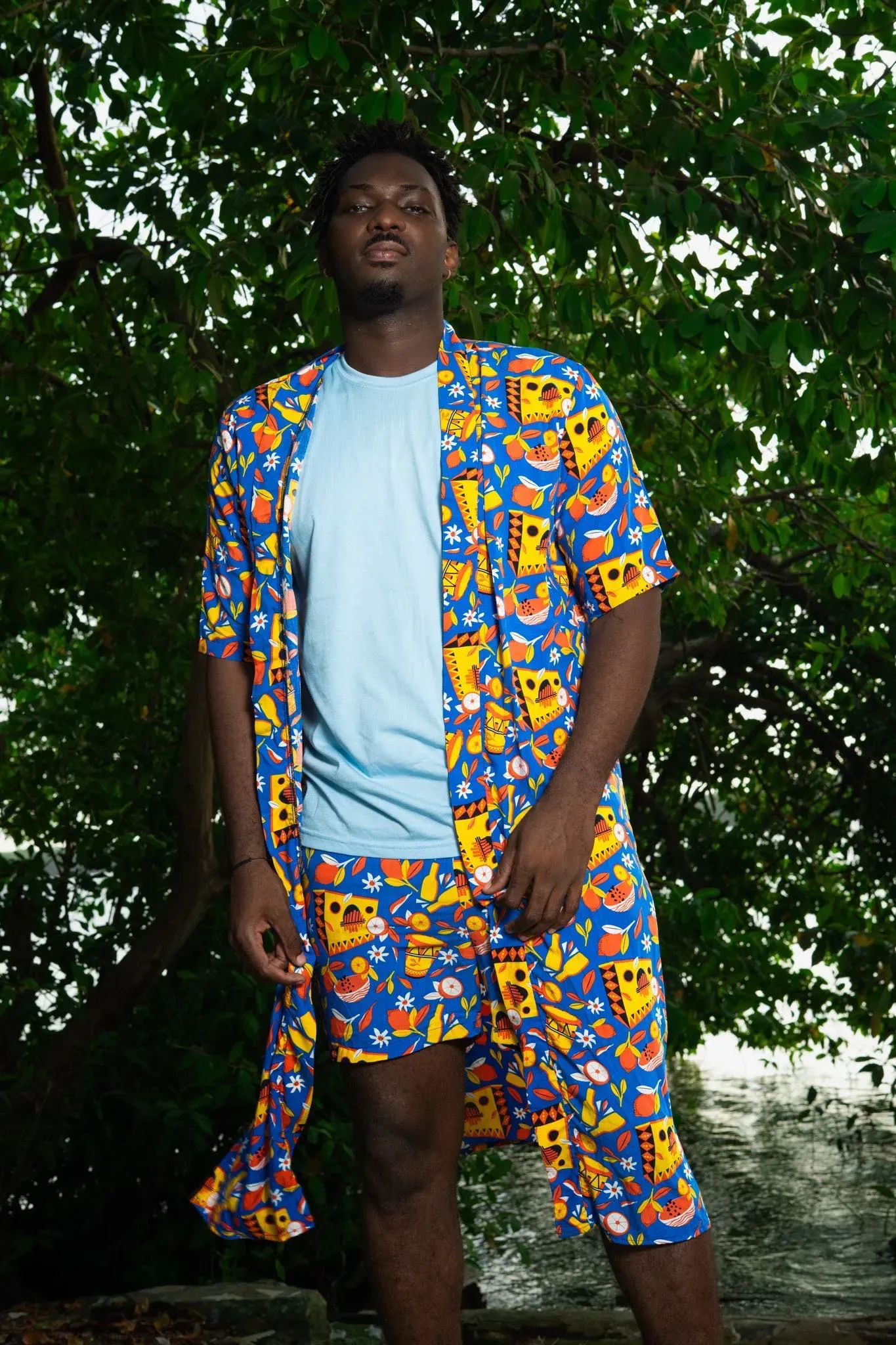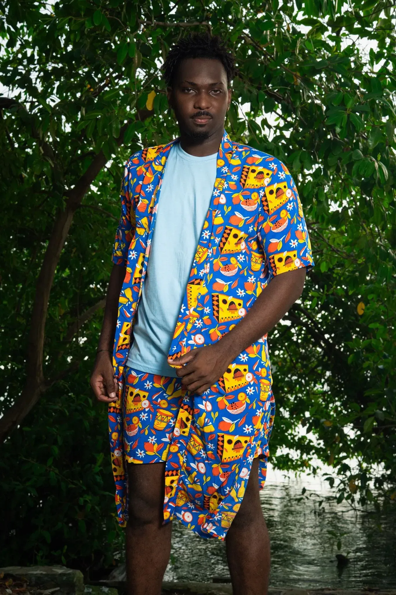Descubre nuestro kimono largo sin género estampado SEXTETO, confeccionado en 100% viscosa fresca. Este kimono versátil en Visaje Negro es perfecto para cualquier ocasión, brindando comodidad y estilo a tu look. ¡Hazlo tuyo hoy mismo!