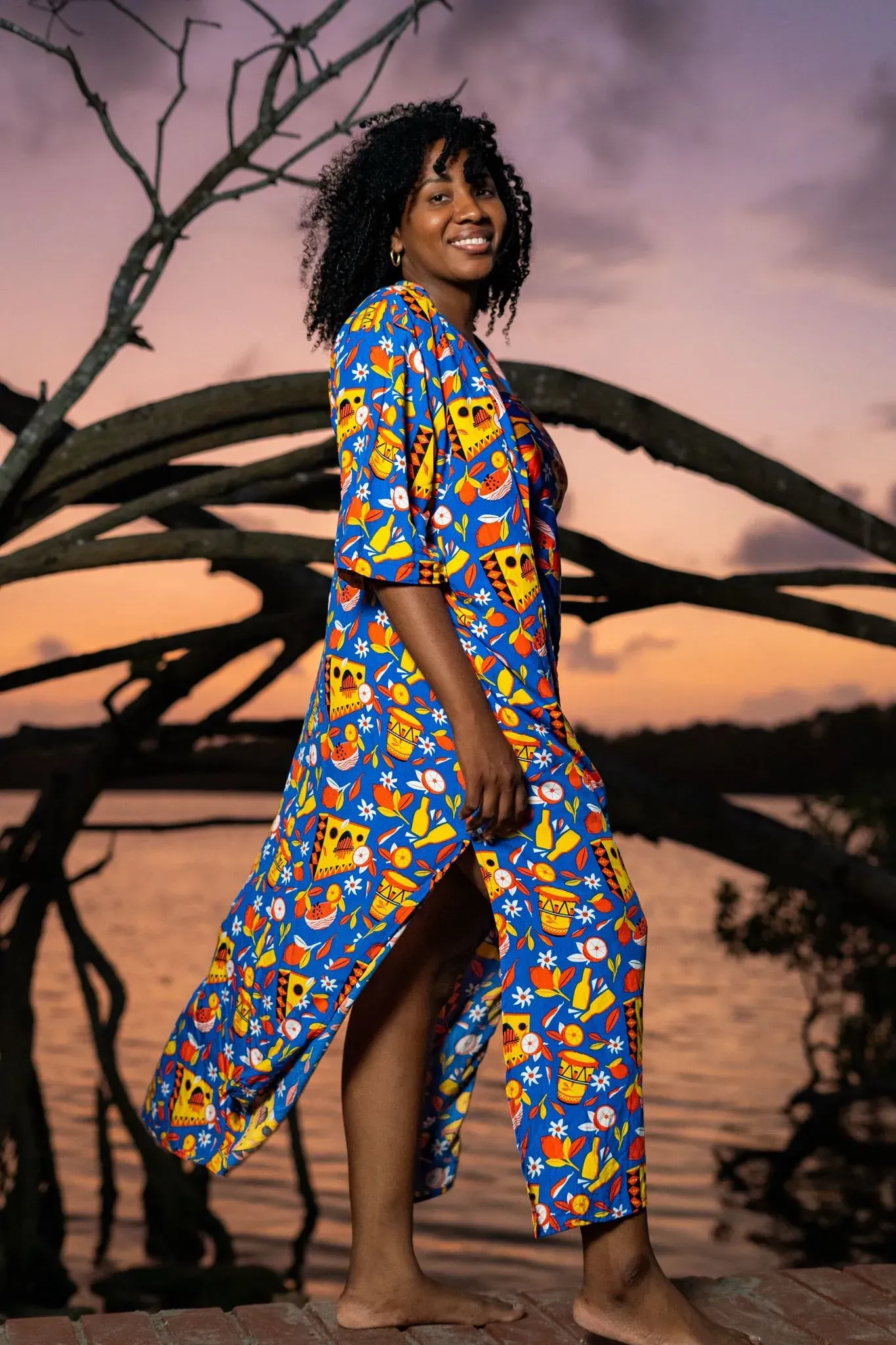 Kimono largo sin género estampado SEXTETO – 100% viscosa fresca | Visaje Negro