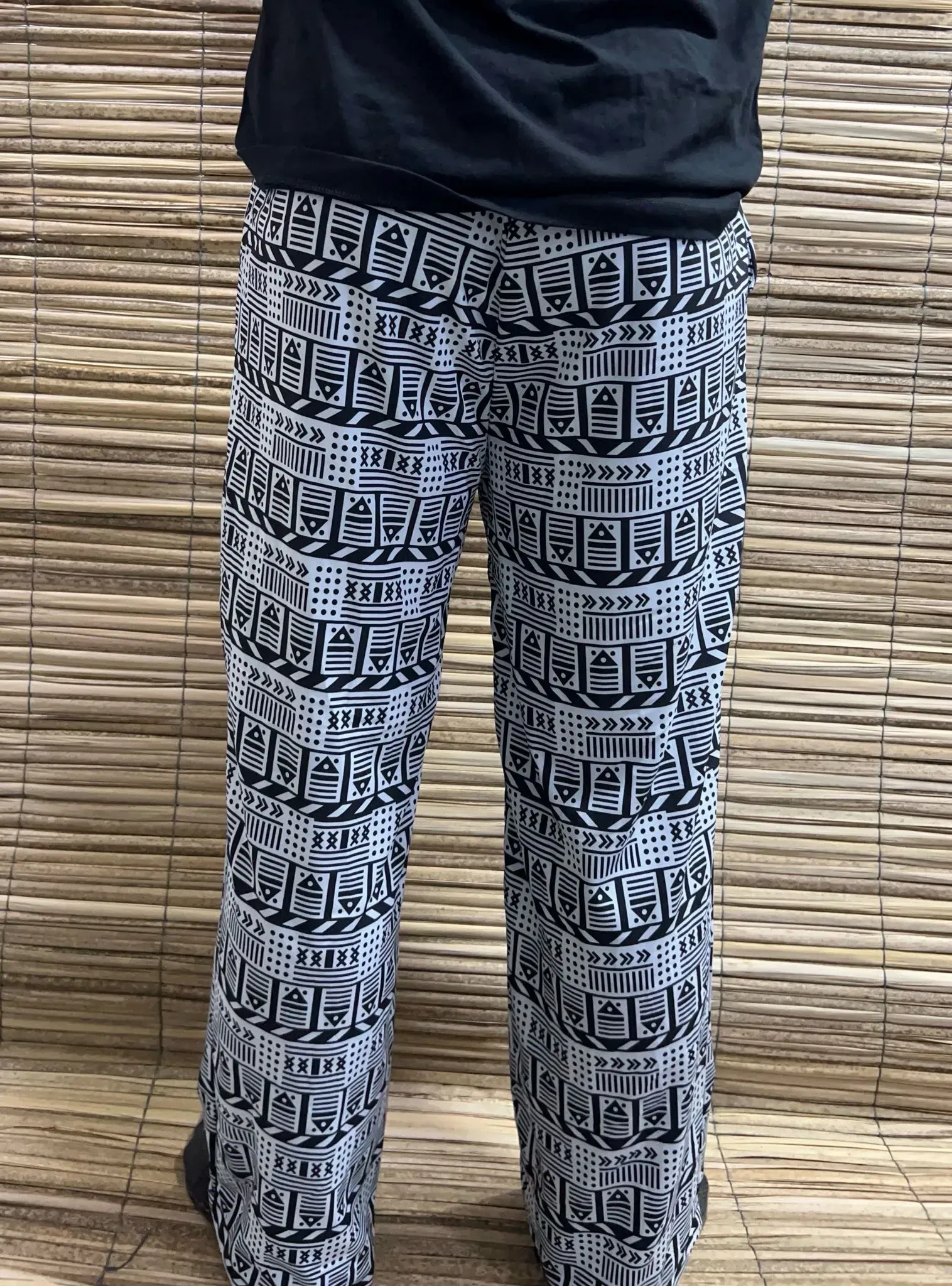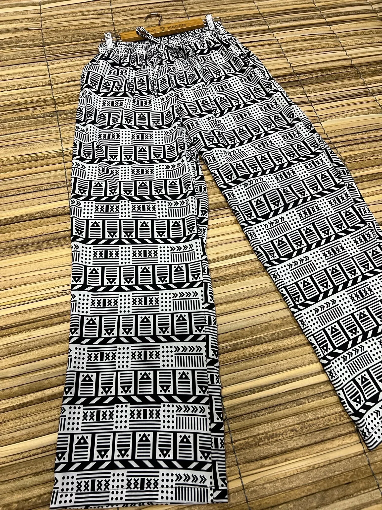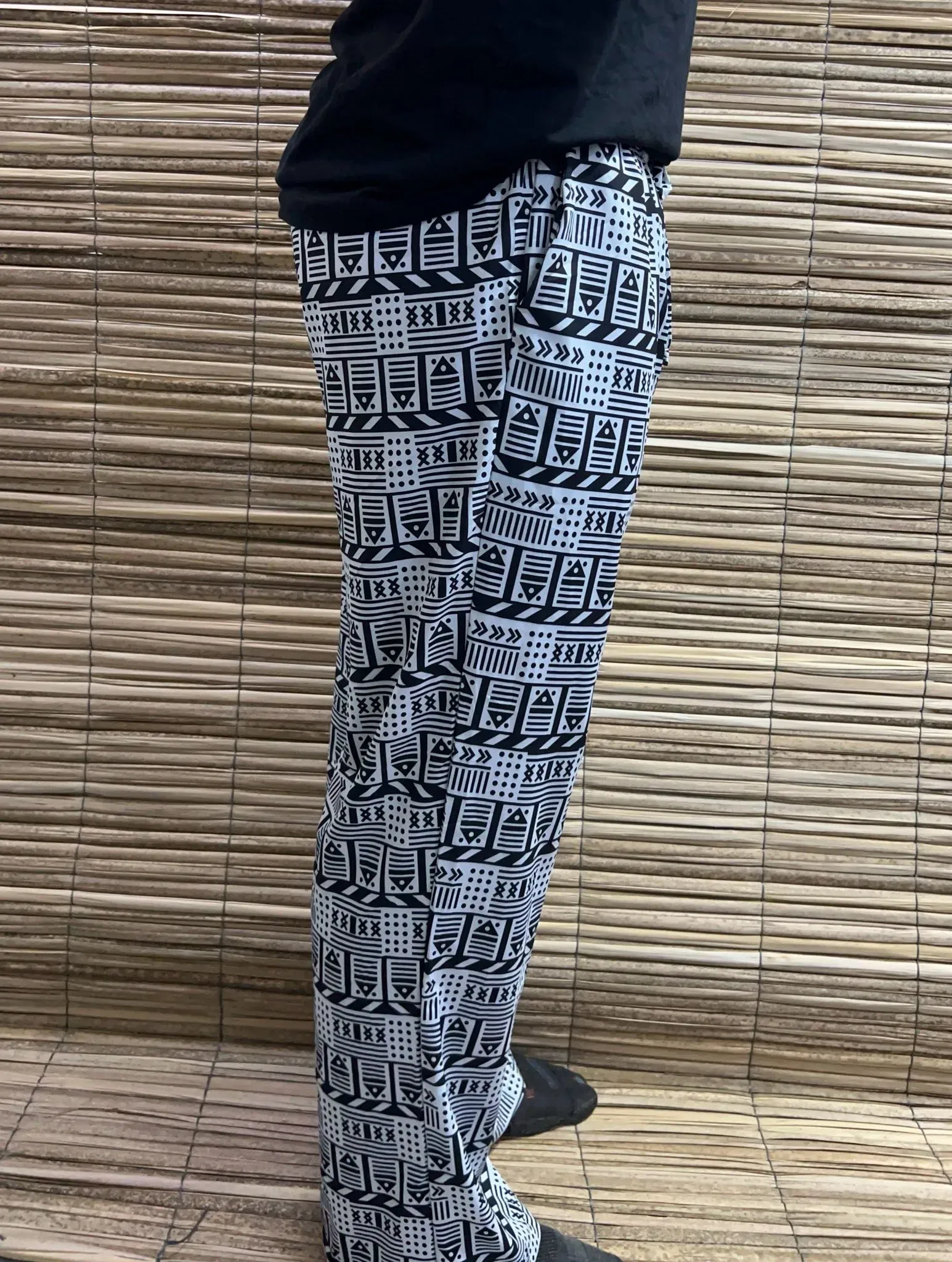 Pantalón Estampado Bota Ancha Diseño Vaivén de Peces Blanco y Negro