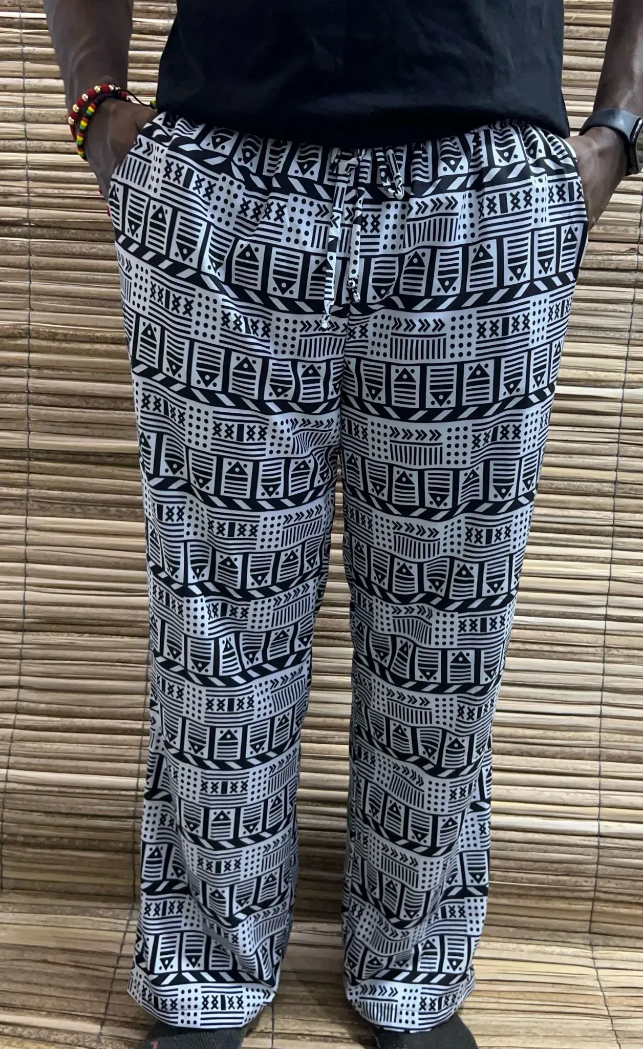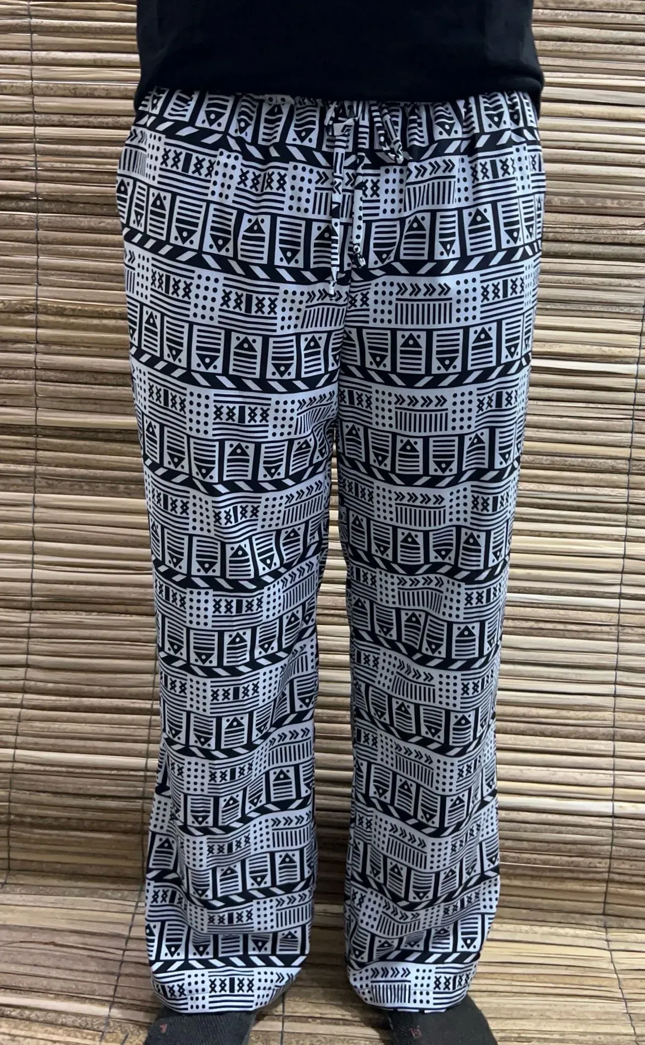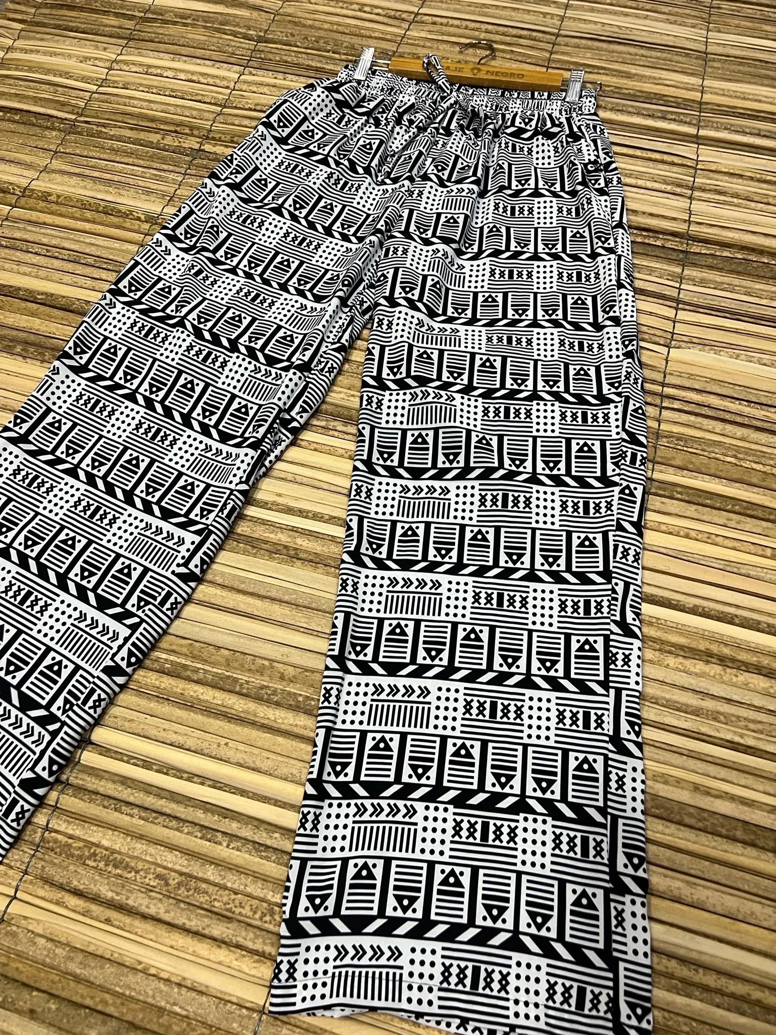 Pantalón Estampado Bota Ancha Diseño Vaivén de Peces Blanco y Negro