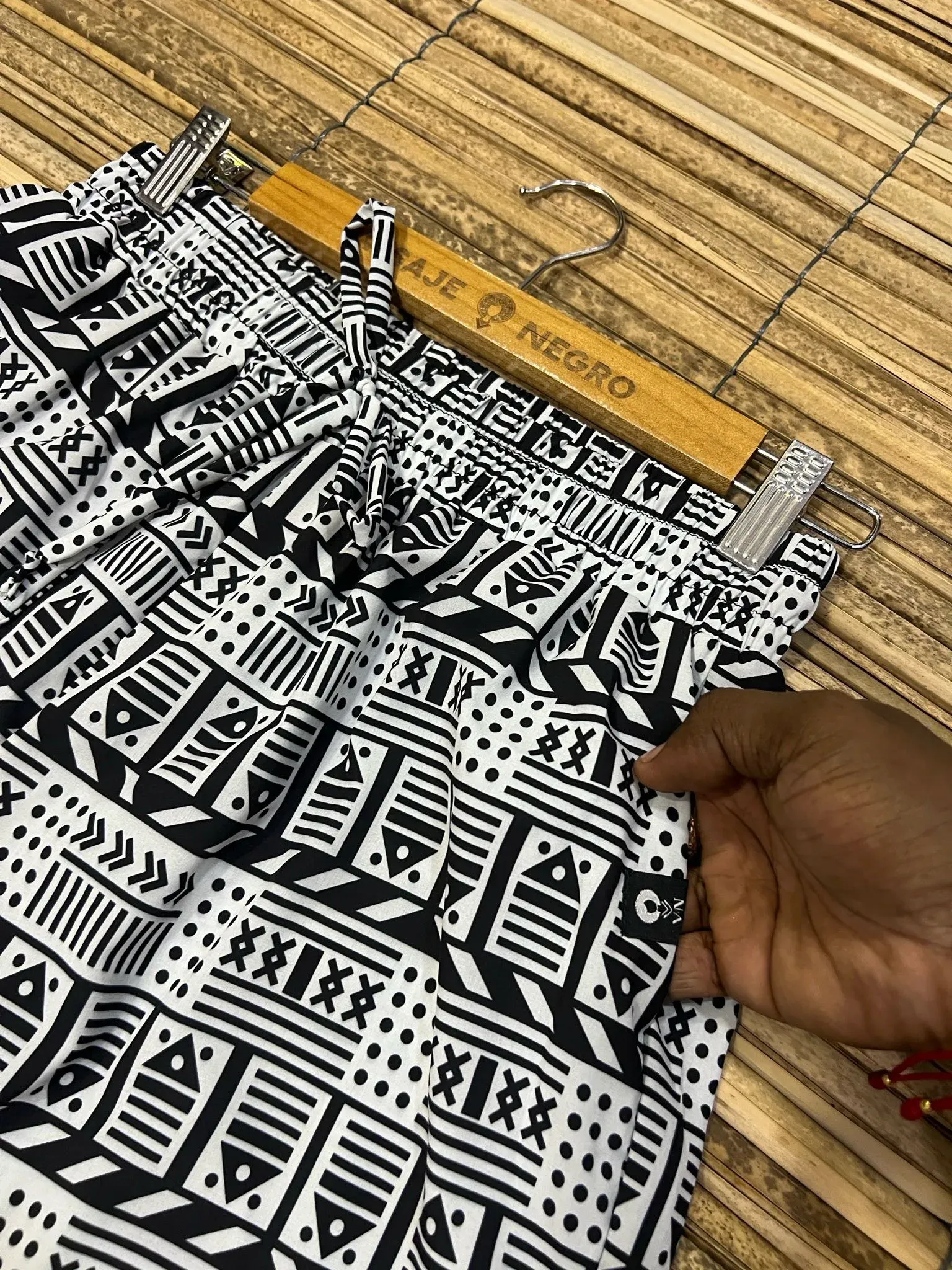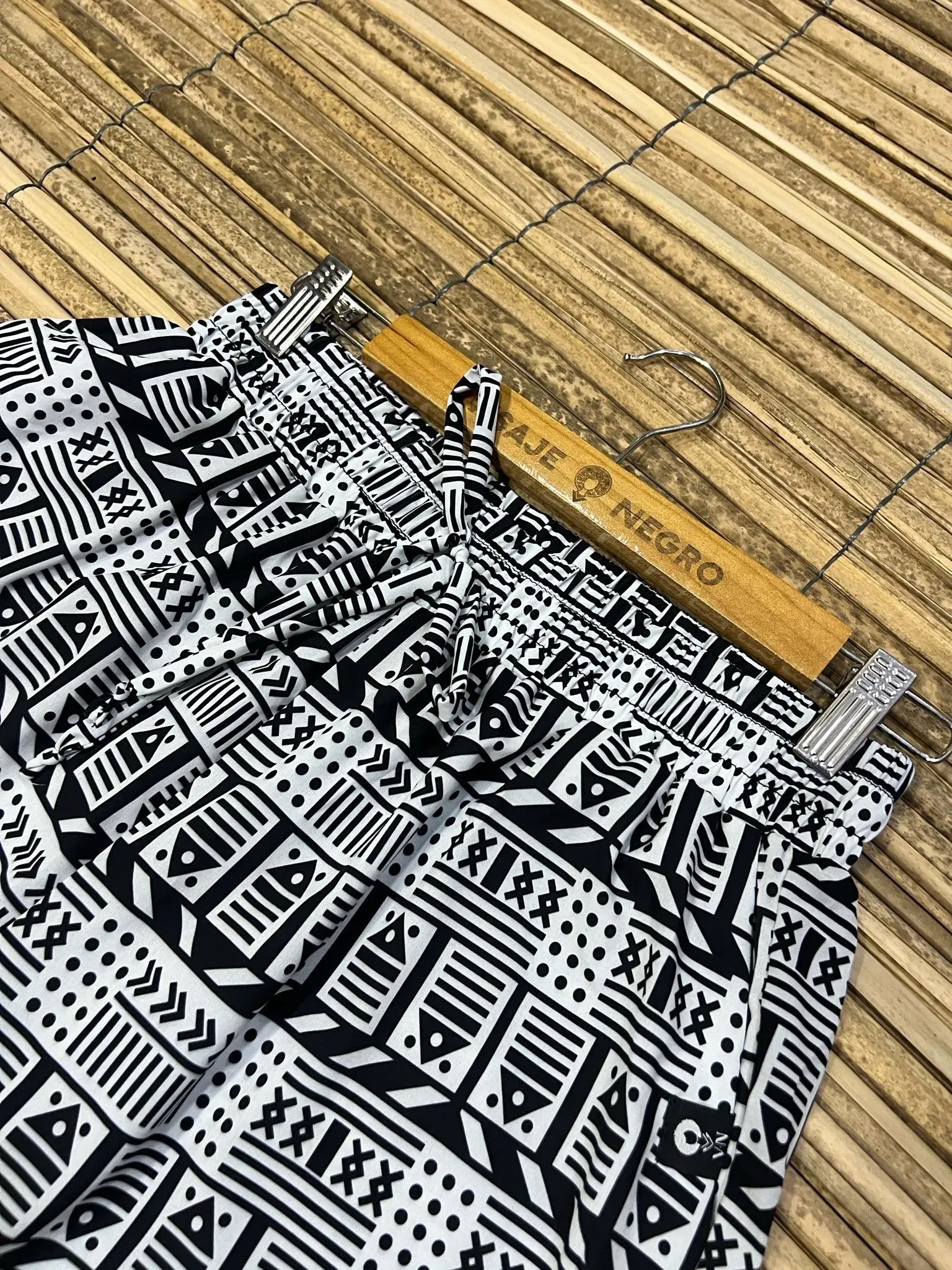 Este Pantalón bota ancha vaivén de peces en blanco y negro es la elección ideal para lucir elegante y a la moda. Con un estampado único que te hará destacar en cualquier ocasión, este pantalón colombiano de Medellín es la combinación perfecta de moda y diseño. ¡Atrévete a destacar con estilo!