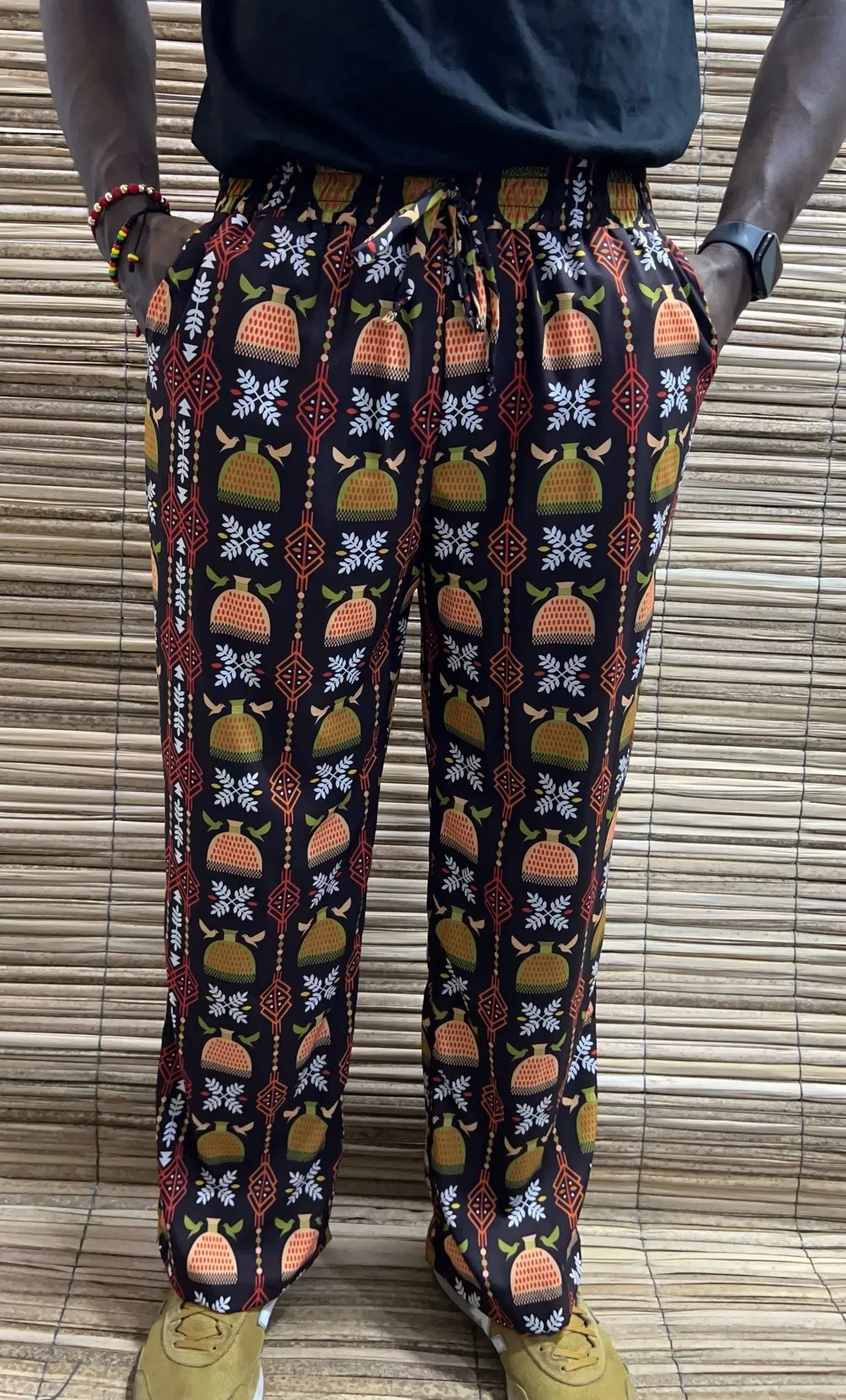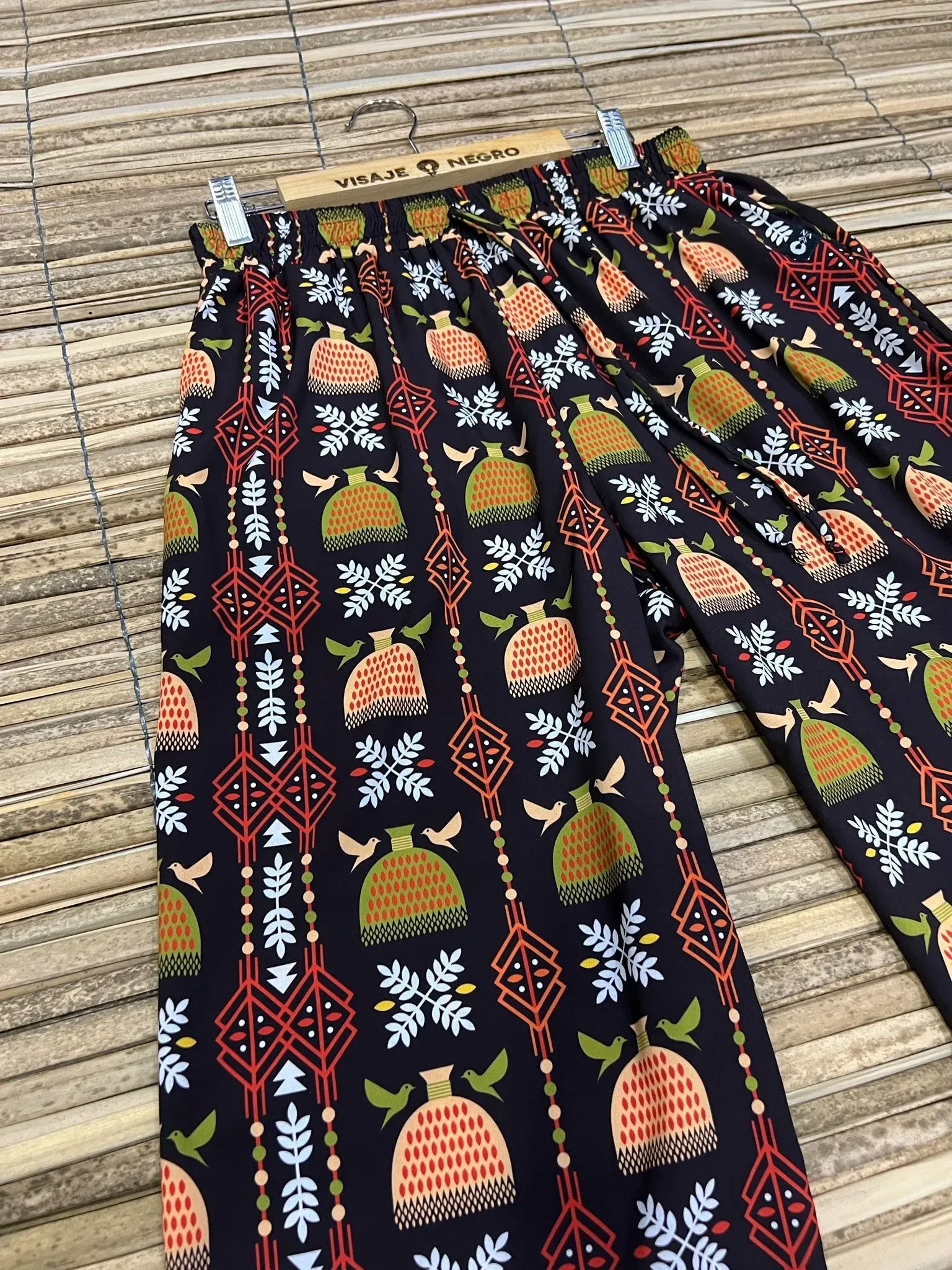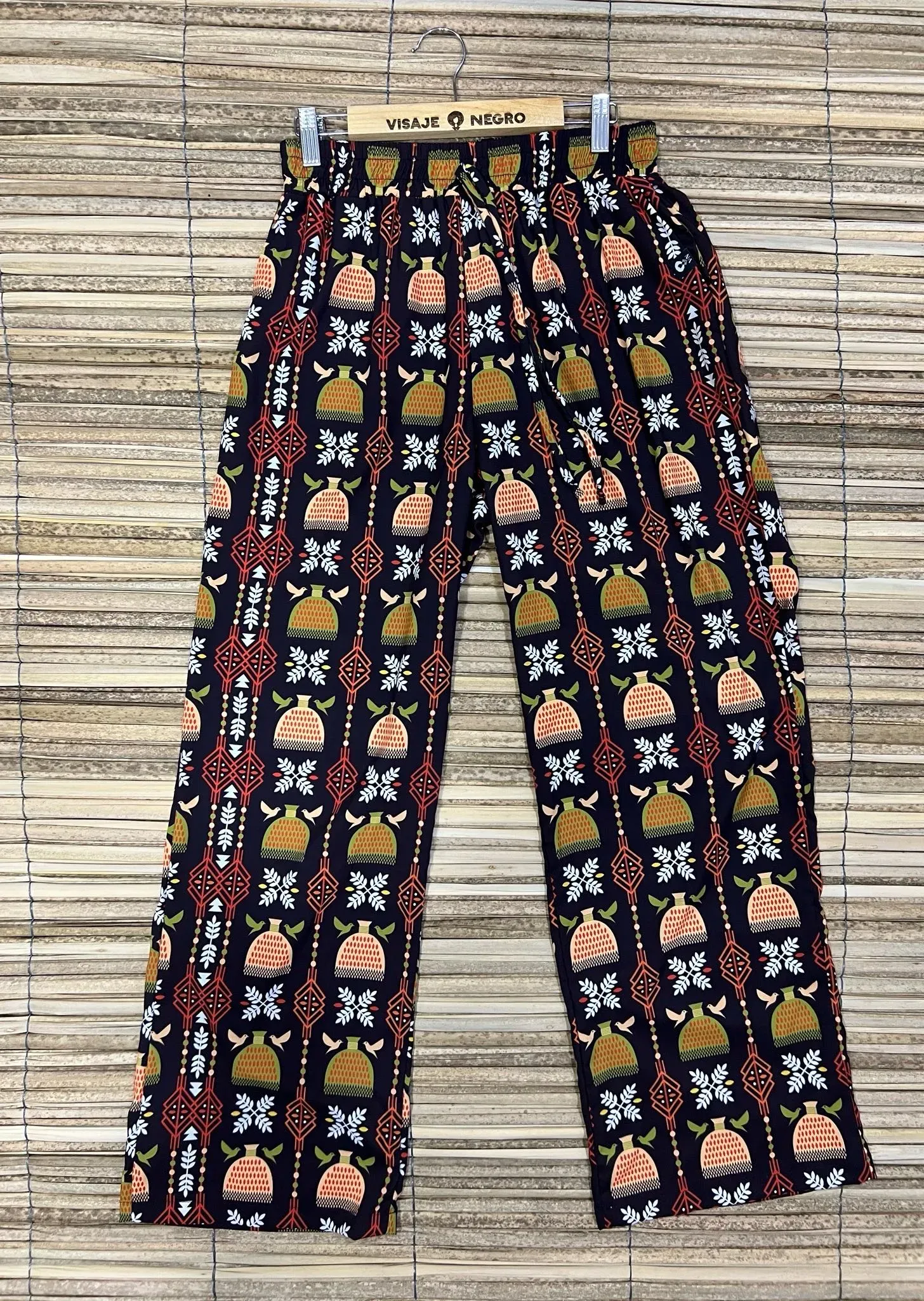 Pantalón estampado Puño de arroz en tela tipo seda – Moda colombiana / Ropa afrocolombiana