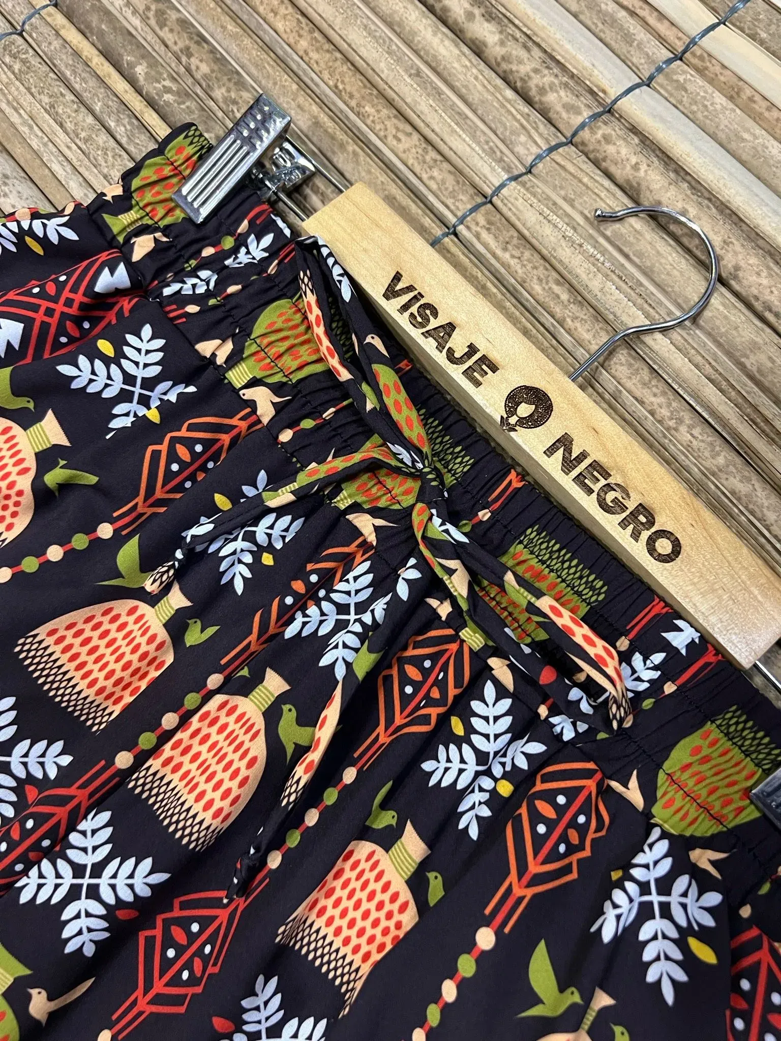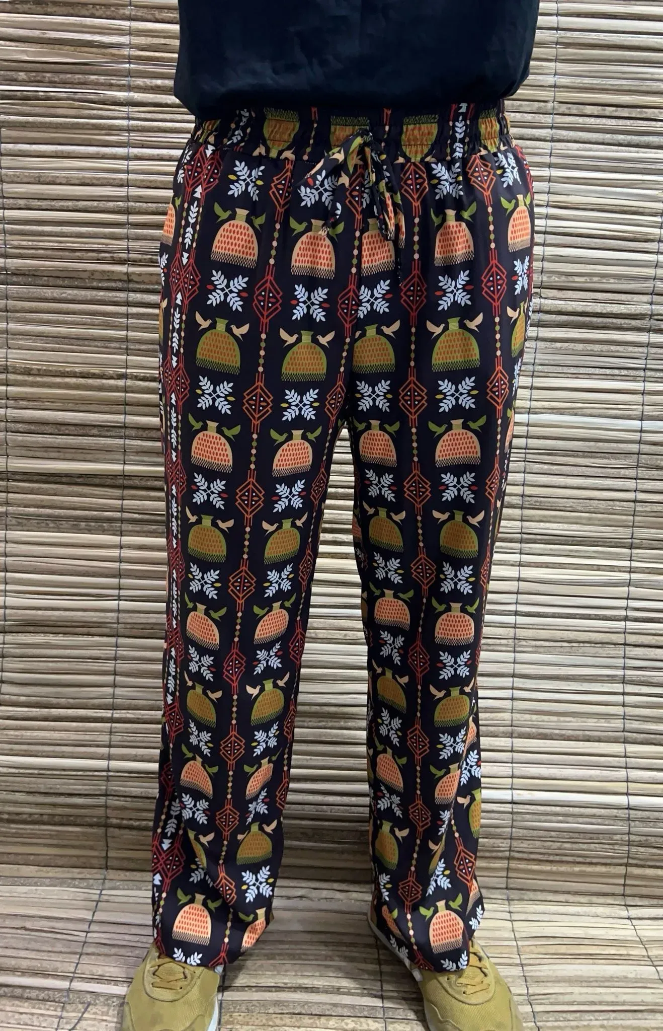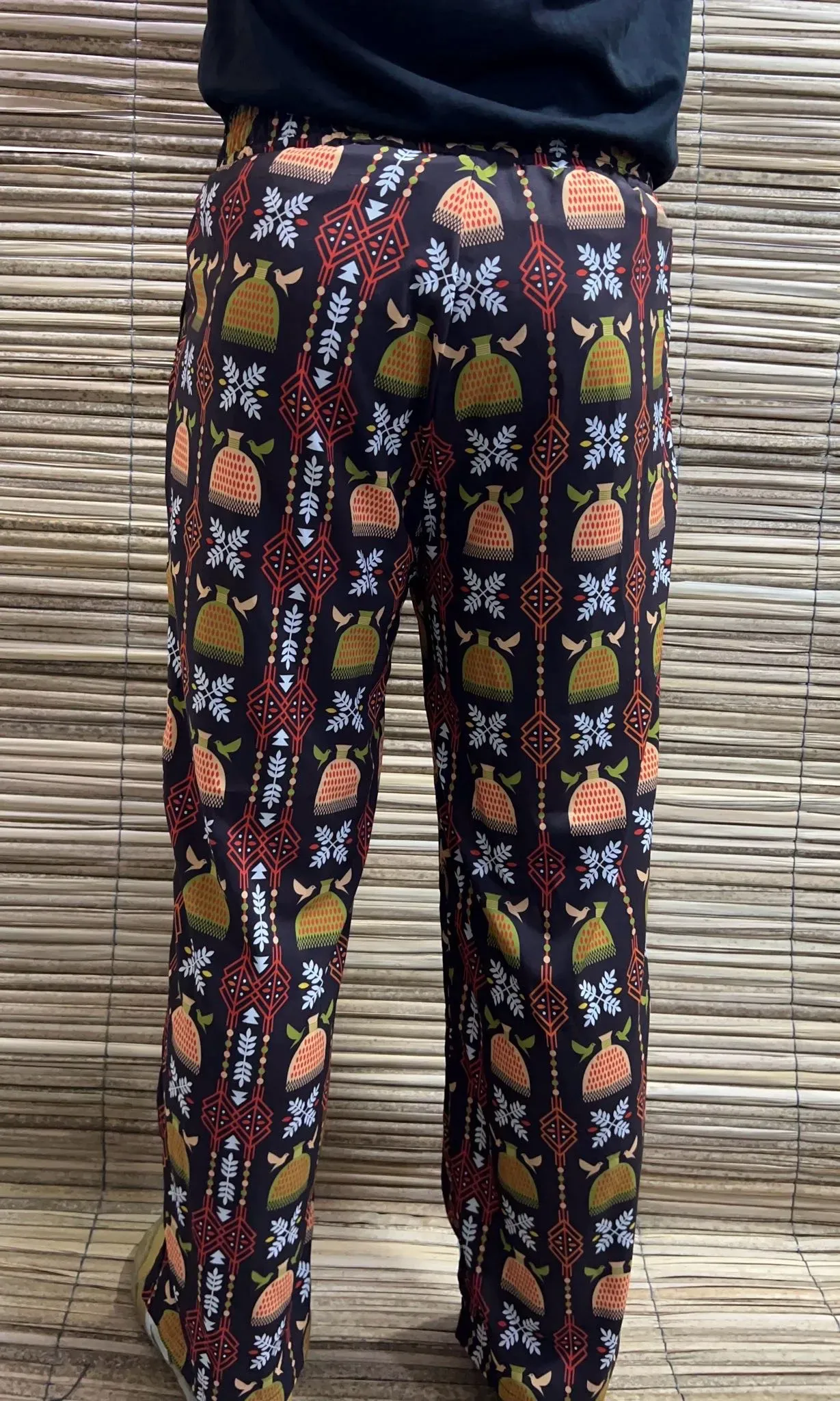 Pantalón estampado Puño de arroz en tela tipo seda – Moda colombiana / Ropa afrocolombiana