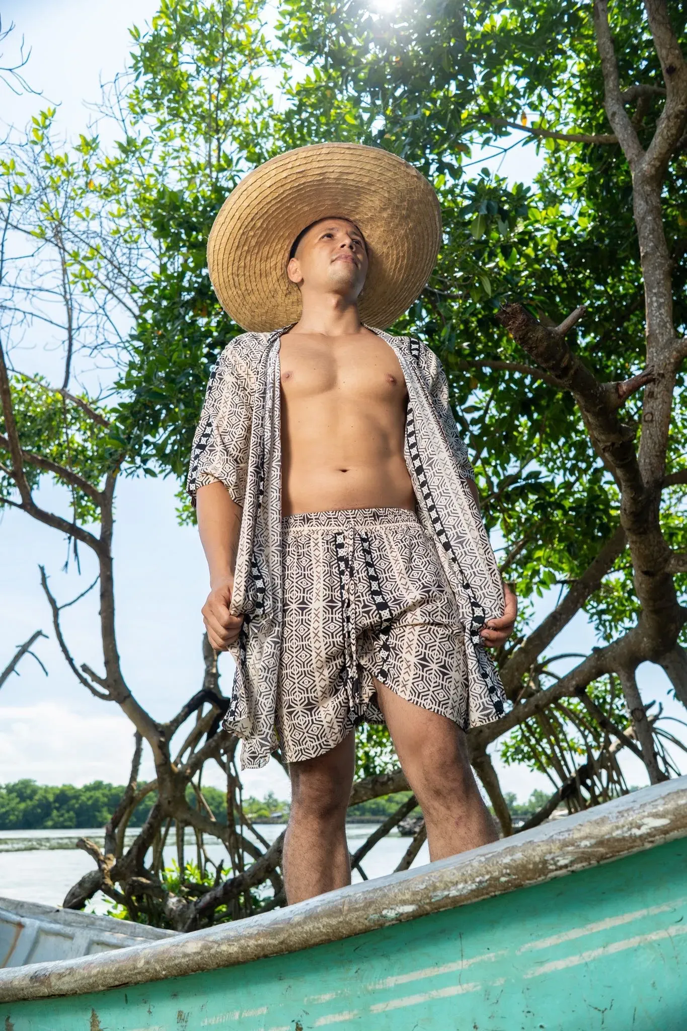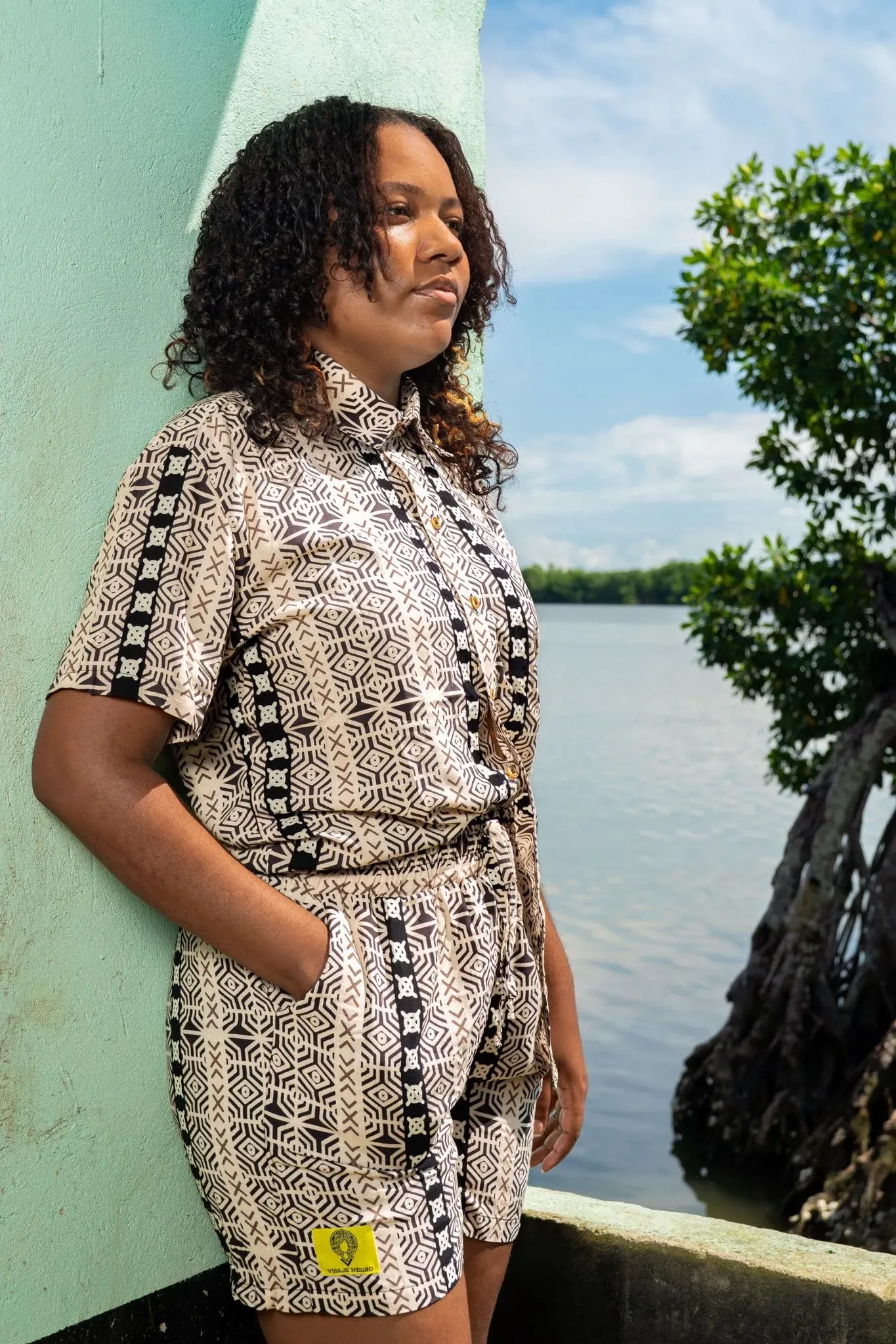 Experimenta la libertad con nuestro short sin género estampado Barcaza. Hecho en 100% viscosa fresca, ideal para climas cálidos. Su estampado exclusivo evoca la fuerza y vitalidad de nuestra conexión con la tierra. Lleno de identidad afrocolombiana, este short es suave, cómodo y lleno de estilo.